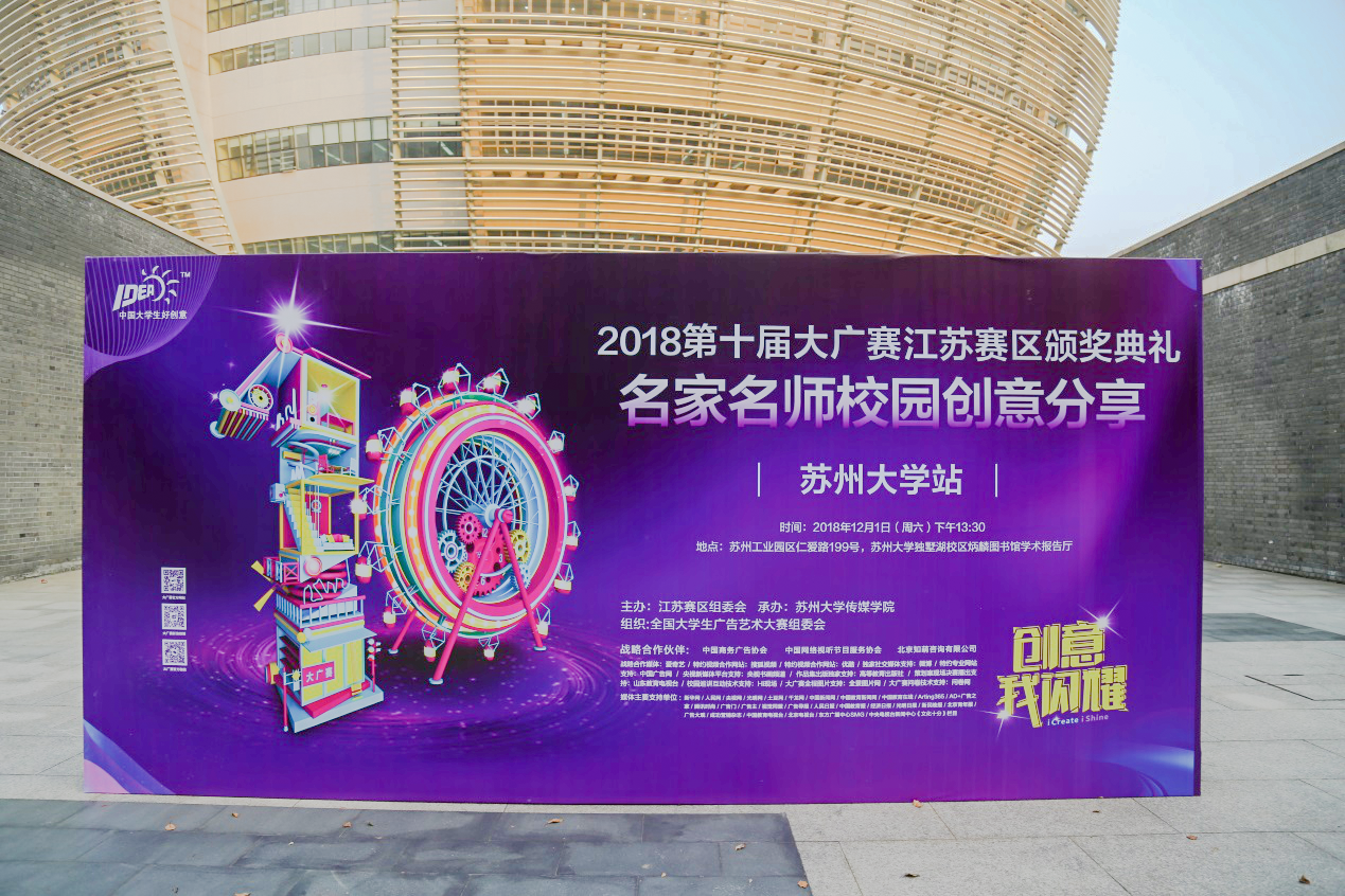 2018年5月25日下午,第十届大广赛江苏赛区名家名师校园创意巡讲活动在常州大学武进校区文彰楼报告厅成功举办。