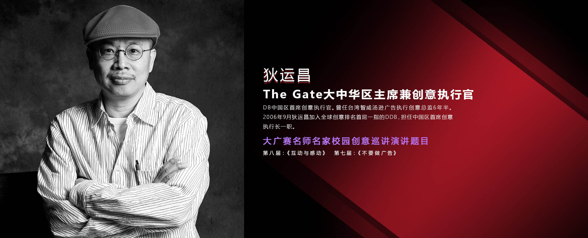 DDB中国区首席创意执行官。曾任台湾智威汤逊广告执行创意总监6年半。2006年9月狄运昌加入全球创意排名首屈一指的DDB,担任中国区首席创意执行长一职。