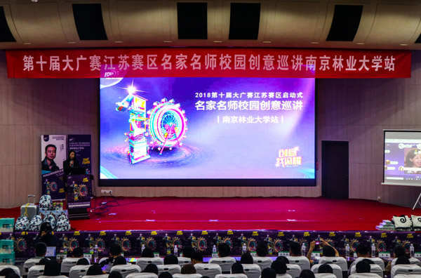 2018年5月9日,第十届全国大学生广告艺术大赛名家名师校园创意巡讲活动在南京林业大学教五楼报告厅举行。此次活动由大广赛江苏赛区组委会主办,南京林业大学人文学院承办,全国大广赛组委会组织。 |