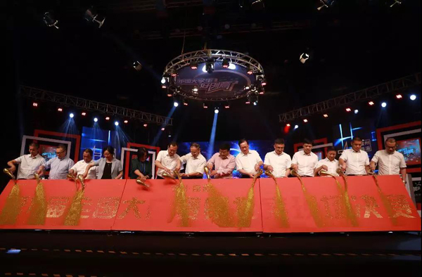 开幕式上,与会嘉宾手持鎏金瓶携手共同启动第十一届大广赛策划案现场决赛。