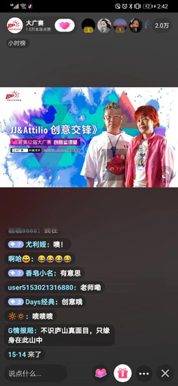 ★JJ&Attilio,这对台湾广告界的创意怨偶,20年后“久别重逢”在大广赛直播间,分享创作经验谈。趣味化的开场后,随即刀光剑影、唇枪舌战,一场针锋相对的另类剖析,带大家领略了Copy&Art的完美组合,也更加清晰了设计逻辑和创意思路。