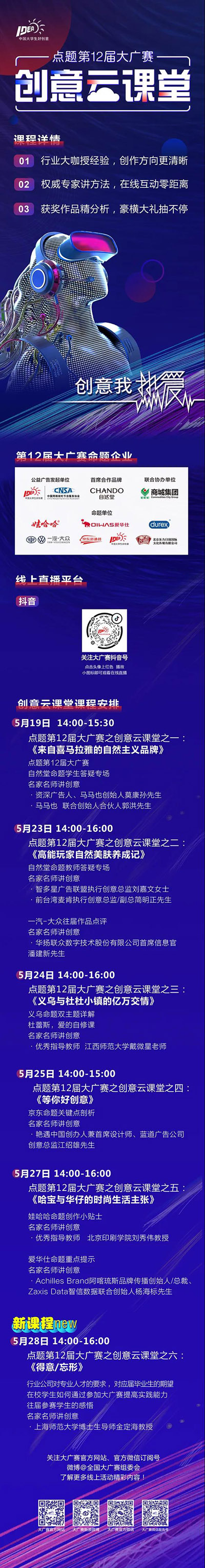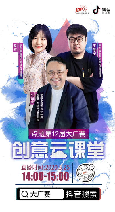 2020年5月24日,大广赛创意云课堂在抖音直播平台圆满结束。本场直播课堂义乌爱喜猫和杜蕾斯推出“义乌与杜杜小镇的亿万交情”上下节课。特邀请大广赛优秀指导教师、江西师范大学的戴微星老师带来《影视广告创意“三板斧”》创作指导和案例分享。