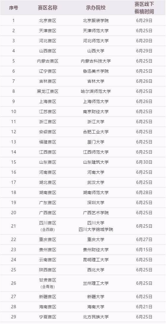 【公告】第12届大广赛各赛区参赛作品线下截稿时间一览表