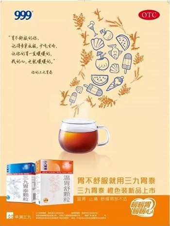 华润三九旗下产品“三九胃泰”2015年推出新品橙色装,以新品橙色装作为本次的命题是“不一样的温暖,一样的用心“,核心人群定位80后年轻消费群体,结合目标人群的心态或行为习惯,用他们喜欢的方式,与他们建立情感联系,增加对品牌的好感度。将新品橙色装和“暖暖的”概念及品牌调性持续发酵,让新品橙色装更有记忆点。以橙色装吸引26-35岁消费群体尝试,提升该年龄段的产品尝试率。