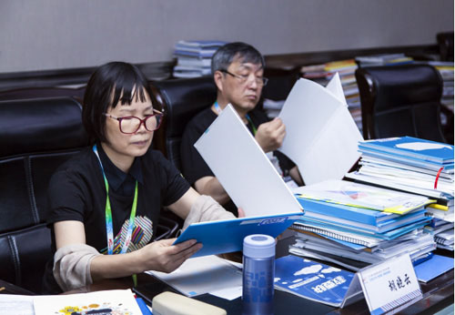 策划案组评审现场,评委一丝不苟严格审阅每一件作品