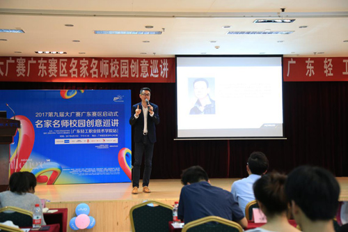 2017年4月19日下午,第九届大广赛广东赛区名家名师校园创意巡讲活动在广东轻工职业技术学院火爆举行。