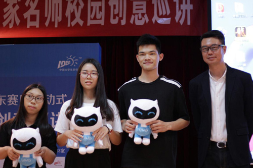 激动人心的第一轮微信抽奖环节到了,开奖的嘉宾是vivo广州产品经理杨育鑫先生,并与获奖的同学合影留念。