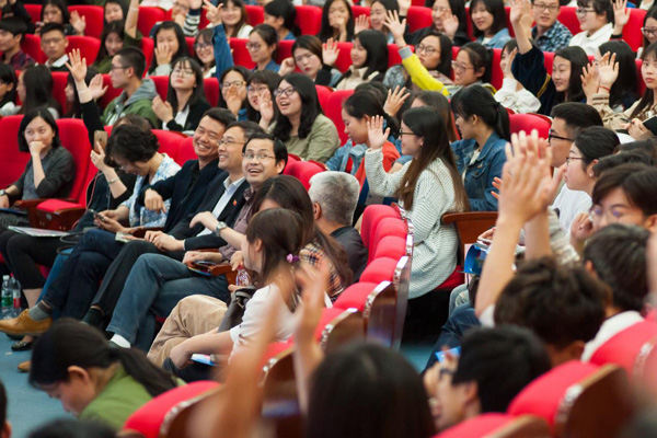 vivo和iH5两大企业分别做了命题解析,对各自品牌内涵进行了介绍,并向参赛同学提出了创意和制作的要求。其间穿插了抽奖互动环节,两大企业纷纷送出丰厚奖品,现场师生积极参与,场面十分火爆。