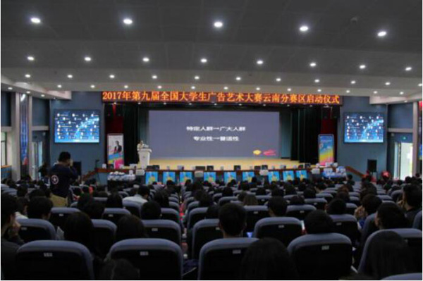 4月21日下午14:00,第九届全国大学生广告艺术大赛(简称“大广赛”)云南赛区启动式暨名家名师校园创意巡讲在昆明理工大学小剧场隆重举行,本次活动由大广赛云南赛区组委会主办,昆明理工大学艺术与传媒学院承办,大广赛组委会组织。国内知名广告营销与趋势分析专家肖明超先生主讲,云南12所高校的老师和同学们共450多人带着激情与创意齐聚一堂。