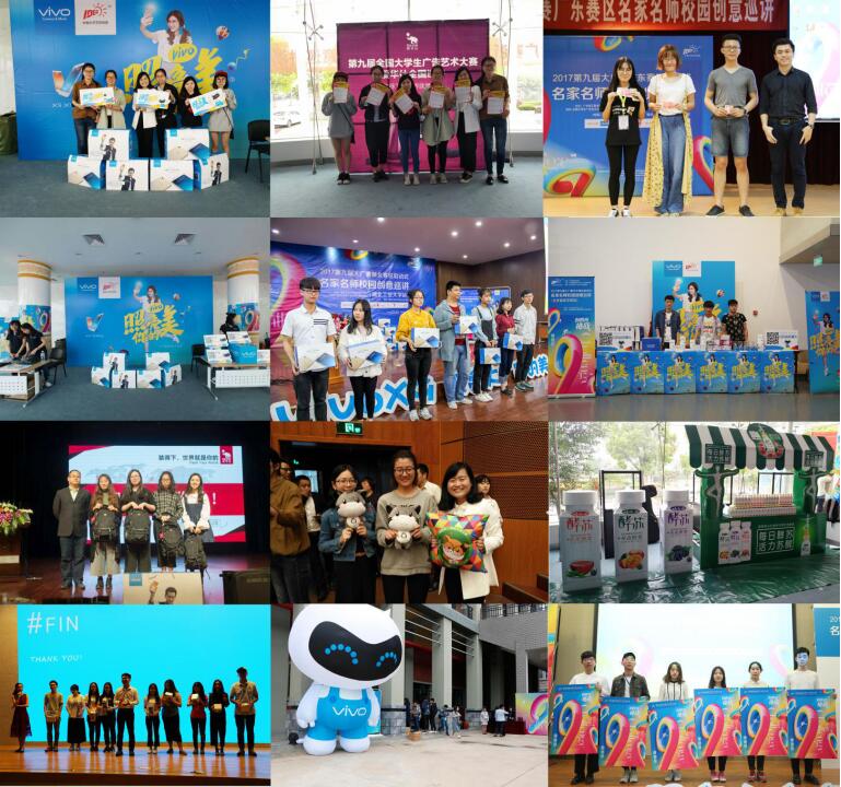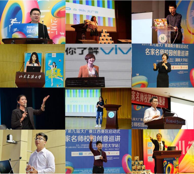 全国各赛区积极安排校园创意巡讲,许多赛区教育厅、(教委)的领导出席,高校领导做动员,承办高校活动组织有序开展,各高校参加活动的积极性高涨,纷纷派师生代表参加。 有14位业界、学届的广告大咖、业界精英为同学们带来世界最前沿的广告创意案例和超前的设计理念。 命题企业拿出新产品和知名品牌的营销项目做命题,让同学们不出校门就可以置身于千变万化的市场环境得到锻炼,打开创想的大门。 vivo智能手机作为首席合作企业,校园活动丰富,宣传推广多样,现场精彩的宣讲和互动,大大激发了同学们创作的热情。 平遥古城、iH5互动大师、娃哈哈、爱华仕、全景图片在校园活动中都进行了品牌展示、命题解析、现场互动等活动内容,众多的礼品也给同学们带来了惊喜和欢乐。 第九届大广赛的竞赛类型,突出了互联网移动端的传播形式。有利学生对新创作工具的掌握,促进新技术的运用,深化教改。 大广赛一年一届,全国联动、组织有序、真题真做、又见大咖,脑洞大开、挑战创意、谁能脱颖而出,谁能拔得头筹,29个赛区2300多所校院,几十万大学生都在较劲和努力中。挑战创意,我们一路同行,共同期待第九届大广赛取得优异的成果。 |