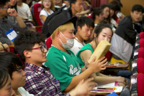 爱华仕市场部主任王敏红女士为获奖学生颁发爱华仕双肩背包