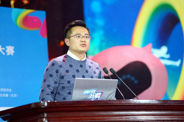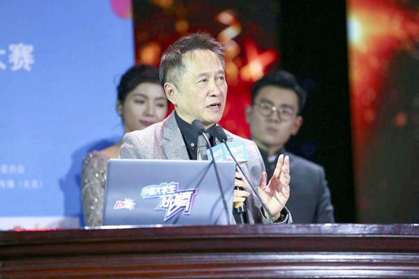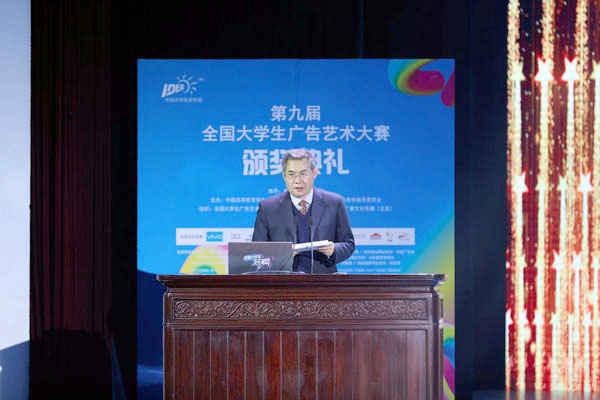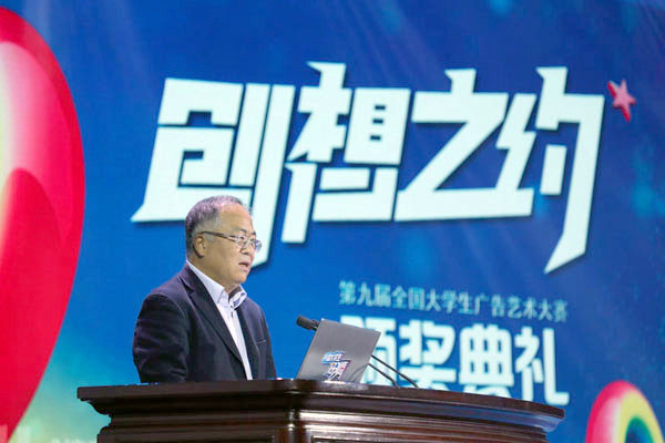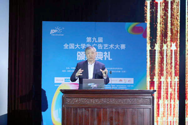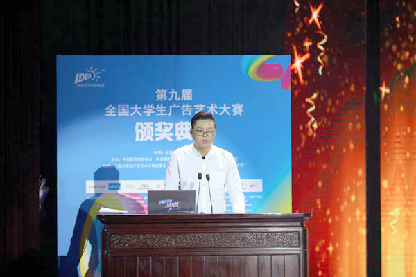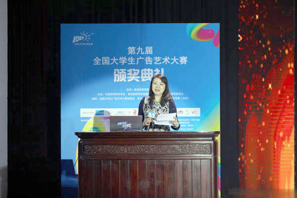![]() 大广赛组委会副主任兼秘书长刘瑞武教授颁发公益广告大奖 |