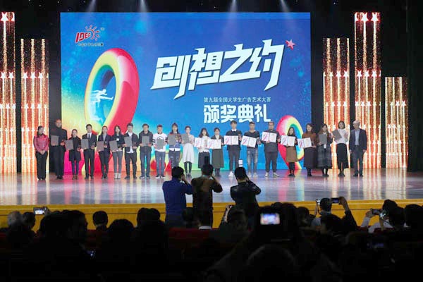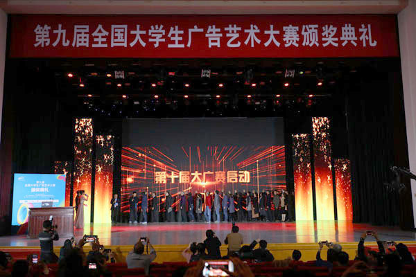 2017年11月24日,第九届全国大学生广告艺术大赛颁奖典礼暨第十届全国大学生广告艺术大赛启动仪式在全国政协礼堂隆重举办,全国千名嘉宾代表、获奖师生齐聚北京,共襄盛举。出席颁奖典礼的有:教育部门相关领导、主办单位的领导、支持单位领导、参赛高校的领导、大广赛组委会成员、评委代表、赛区负责人、18家媒体朋友和900多位获奖师生代表。伴随着开场踢踏舞《青春的节奏》,主持人李爽、宋扬宣布颁奖典礼隆重开幕。