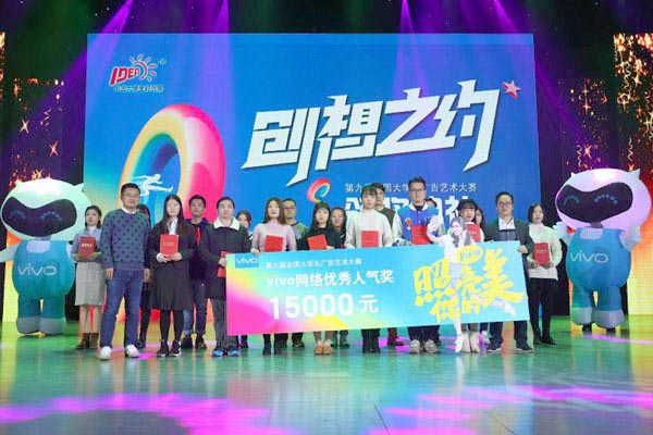 第九届大广赛首席合作品牌vivo智能手机连续两年携手大广赛,vivo智能手机高级品牌经理赵东辉先生表示参与大广赛的两年收获颇丰,希望继续与各位师生深入交流。vivo首创vivo优秀指导教师奖,赵东辉先生特别感谢各位无私奉献、甘为绿叶的指导教师,并现场颁发了vivo网络人气优秀奖、vivo最佳网络人气奖,现场欢呼不断。 |