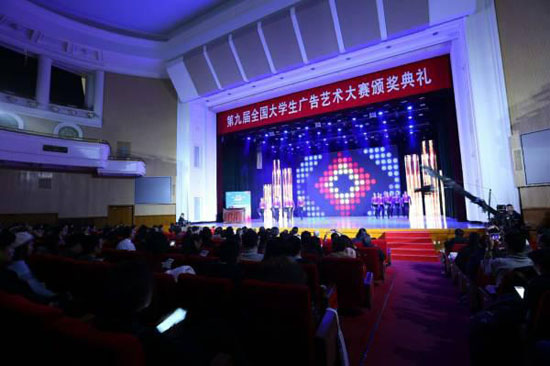 由中国高等教育学会、教育部高等学校新闻传播学类专业教学指导委员会主办的第九届全国大学生广告艺术大赛颁奖典礼,11月24日在政协礼堂举办,1000多位来自全国31个省市自治区的广告创意传媒专业的优秀教师和学生聚集在一起,共襄创意盛宴。出席颁奖典礼的有:教育部门相关领导、主办单位的领导、支持单位领导、参赛高校的领导、大广赛组委会成员、评委代表、赛区负责人、18家媒体朋友和900多位获奖师生代表。伴随着开场踢踏舞《青春的节奏》,宣布颁奖典礼隆重开幕。