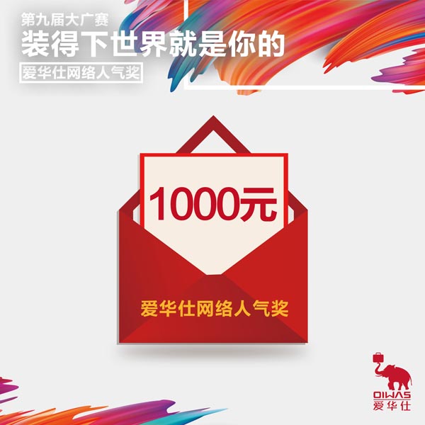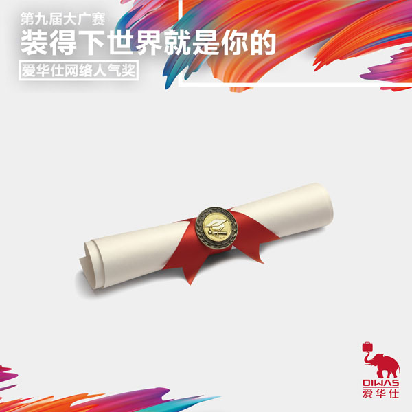 3、爱华仕最佳网络人气奖:获得微博网络人气奖优秀奖的前10名作品,将在“爱华仕”微信公众号进行微信投票,票数最多的作品,将获得爱华仕网络人气奖,同时获得爱华仕提供的1000元奖金及荣誉证书,更有可能争取到创意落地的机会。