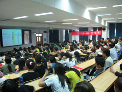 5月27日,活动第二站抵达中国传媒大学,主讲人是灵智大洋北京公司执行创意总监徐克瑄,他的客户群包括微软、飞利浦等世界知名企业。徐总监和大学生探讨的主题是“如何做出有创意的广告”,为此他先放了一个自己创作的台湾知名少女组合S•H•E出演的“康师傅3+2”广告。没想到片子播罢,立刻遭遇了充满个性学生的正面挑战,一位同学大胆质疑:“靠明星效应来做的广告有什么价值?”随后,讲座内容更加扣人心弦,徐总监重点介绍了广告中的“smile原则”,并通过可口可乐等五个经典的广告片,分别加以阐释,让同学们大开眼界,受益匪浅。
