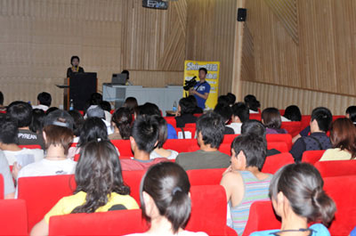 北京赛区组委会联系人敏娜加特主持此次活动并向在座同学简单介绍了参赛办法和北京赛区后期的活动。张琳老师向大家介绍汉王的选题以及过去比赛的优秀作品。电通广告公司创意总监梁成大老师向大家作了题为“如何让你的广告作品味道好极了”的演讲。梁成大老师的演讲深入浅出又逐层深入,同时运用丰富的例子直观地说明了创意的执行、创意的来源以及如何使自己成为真正的创意人。演讲清晰明了,同学们不时做着笔记,很有收益。