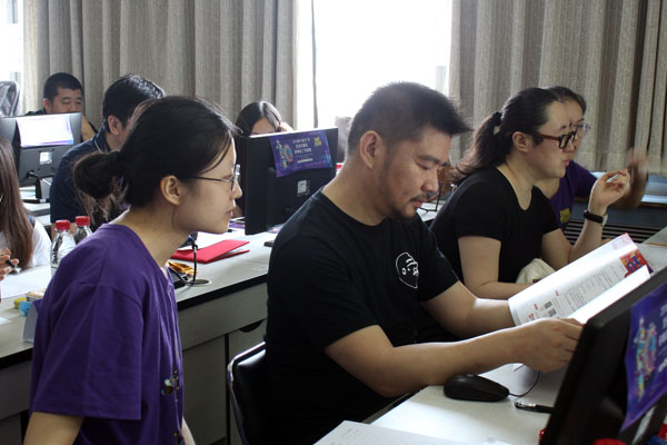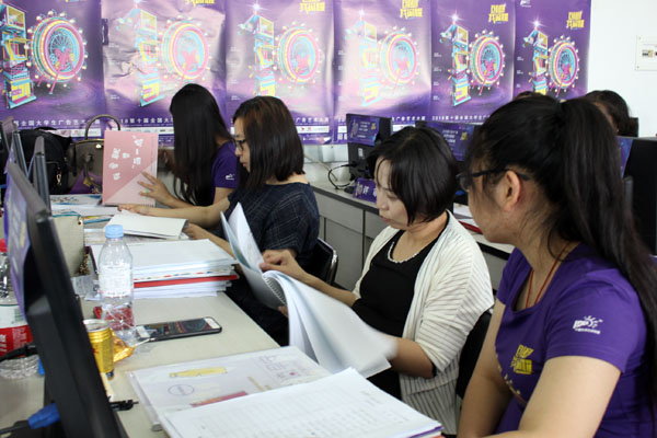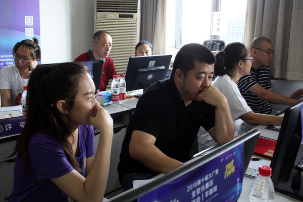 评委们细致专注地审核作品