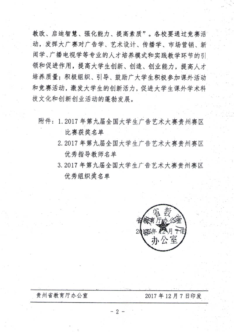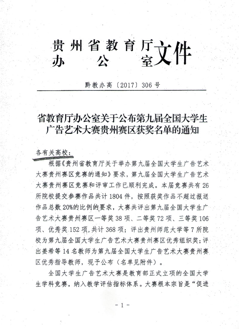 贵州赛区——第九届大广赛贵州赛区获奖名单