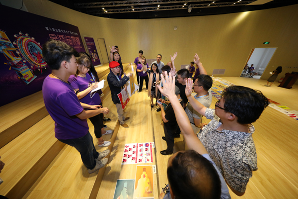 8月12日下午14:00,评委齐聚中国广告博物馆,对平面类作品进行实物终评。经过工作人员的布置,206组纸质平面作品已按命题分类、整齐有序地平铺在阶梯上。评委们逐一查看后投票,完成第一轮评选;复选时,评委们力荐各自欣赏的作品,据理力争,最后通过举手表决评选出一等奖作品,力求做到公平公正。