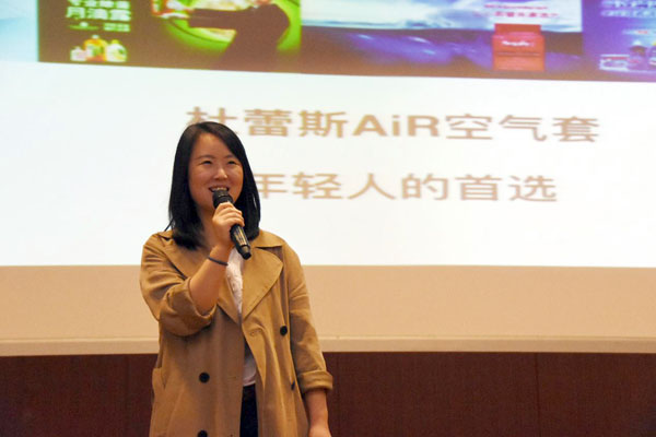 第一个向同学们解析命题的便是本次大广赛的联合协办品牌杜蕾斯,杜蕾斯品牌经理杨佳楣女士上台发言,通过与同学们接连不断的问题互动,得到同学们热情的回应,真正诠释了杜蕾斯AiR“年轻人的首选”的品牌口号。此外杨女士向大家介绍了杜蕾斯“情趣而有原则和底线”的新媒体运营策略,以惊人的数据,生动地诠释了杜蕾斯的品牌形象和文化内核。杨女士也对本次大赛的命题形式、命题内容做了深入解读,为本次比赛的方向给出了清晰的定位。她如良师益友的演讲风格给同学们留下了深刻的印象,深受同学们喜爱。