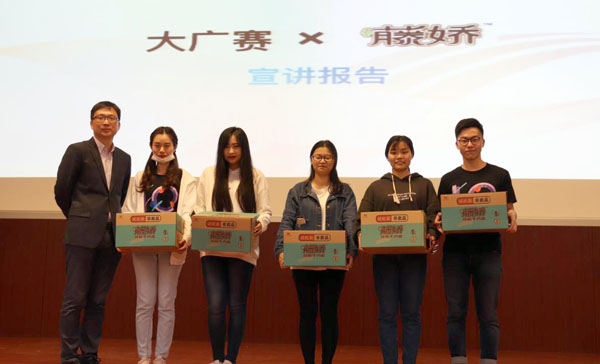 在每个企业方宣讲完的微信上墙抽奖环节,企业与在场师生展开了亲切的互动,品牌宣讲人给幸运儿发放了奖品,包括杜蕾斯大礼包,娃哈哈大红枣饮料,藤娇藤椒牛肉面等。