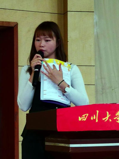 随后,来自四川大学的王婉如老师详细介绍了大赛要点,命题类别、竞赛形式和评审组成员。此次大赛的主题口号为:创意我闪耀。王婉如老师鼓励同学们大胆发挥创意,积极报名参赛,并仔细阅读策略单中的策略要求。