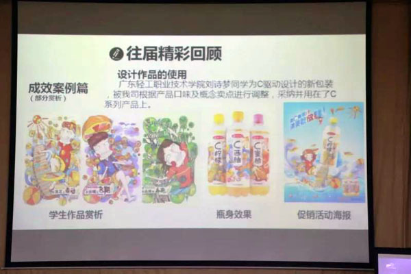 娃哈哈成都销售分公司产品经理陈铄女士也来到巡讲现场,她对娃哈哈命题进行了深入解析。陈铄女士指出,杭州娃哈哈集团有限公司更加看重的是参赛选手的创新、创意,作品能否让观众产生情绪上的共鸣,给观众以感触,能否呈现产品的核心价值。陈女士给大家展示了近年来成都赛区涌现出的一些较好的参赛作品,让同学们很受鼓舞。