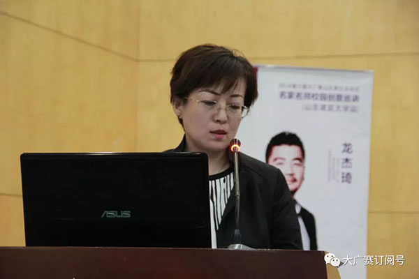 2018年5月4日下午2时整,第十届全国大学生广告艺术大赛山东赛区启动式暨名家名师校园创意巡讲活动在山东建筑大学500人报告厅拉开帷幕。本次巡讲活动由大广赛山东赛区组委会主办,山东建筑大学承办,全国大学生广告艺术大赛组委会组织。出席本次活动的领导嘉宾有山东建筑大学艺术学院院长薛娟教授、Cheil杰尔广告前National ECD (中国区执行创意总监)龙杰琦先生、统一企业品牌经理钱小毅先生、全国大广赛组委会秘书处傅晓琦老师等。本次活动有山东大学、中国石油大学、山东师范大学、山东财经大学、齐鲁工业大学、山东传媒大学、山东女子学院、聊城大学等十几所高校近600名师生参加。