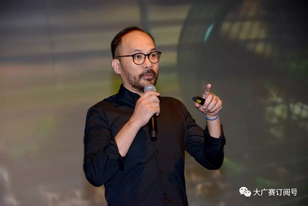 在命题解析环节之后,北京广告公司创意顾问薛振添先生为大家带来“创意的秘密”主题演讲。薛振添先生结合丰富多彩的广告视频案例和自身的广告工作经验告诉同学们如何从生活中寻找灵感。他提到,训练产生联想的能力有助于拓展创意思考的深、广度,而联想是每个创意思考的核心。最后,他鼓励同学们在大广赛走出自己的路。