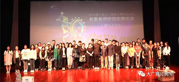 2018年5月5日下午,第十届大广赛浙江赛区启动式暨名家名师校园创意巡讲浙江大学站在浙江大学玉泉校区永谦剧场举行。