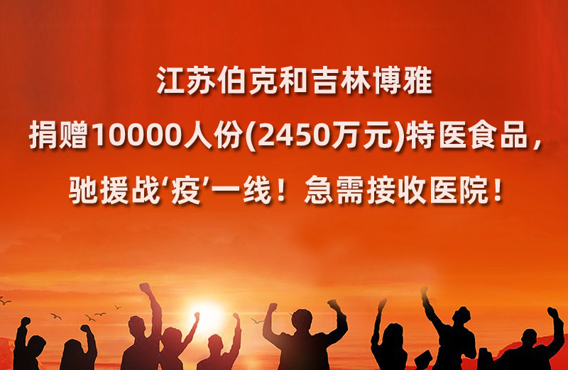江苏伯克和吉林博雅捐赠10000人份(2450万元)特医食品,驰援战‘疫’一线!急需接收医院!