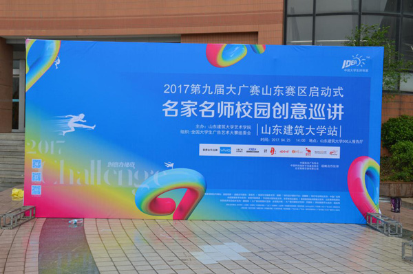 终于等到你! 第九届全国大学生广告艺术大赛山东赛区启动式暨名家名师校园创意巡讲在山东建筑大学500人报告厅顺利举行。本次巡讲活动由山东赛区组委会主办,山东建筑大学艺术学院承办,全国大学生广告艺术大赛组委会组织。活动邀请了“华文广告四大教父”之一、麦肯光明广告有限公司顾问、上海马马也文化传播有限公司创始人莫康孙先生作为主讲嘉宾、大广赛首席合作品牌vivo的企业代表及互动类软件独家支持单位iH5的企业代表莅临现场,山东建筑大学、山东大学、山东师范大学、济南大学等数十所高校的师生也赶来参与,齐鲁晚报、山东广播电视台融媒体中心、济南教育台、山东教育电视台、大众网等多家媒体单位也出席了本次活动。