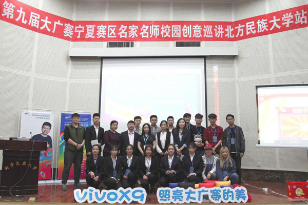 4月25日下午,第九届全国大学生广告艺术大赛宁夏赛区名家名师校园创意巡讲在北方民族大学隆重举行。本次活动由宁夏回族自治区教育厅、宁夏赛区组委会主办,北方民族大学承办,全国大学生广告艺术大赛组委会组织。