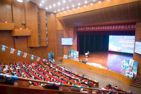 4月21日下午13:30,第九届全国大学广告艺术大赛浙江赛区名家名师校园创意巡讲浙江大学站在浙江大学紫金港校区小剧场火爆开展。这次活动由浙江赛区组委会主办,浙江大学传媒与国际文化学院承办,全国大学生广告艺术大赛组委会组织。正值杭州春光明媚的好时光,浙江全省近二十所高校、1500余名师生汇聚启真湖畔,脑洞大开,挑战创意。