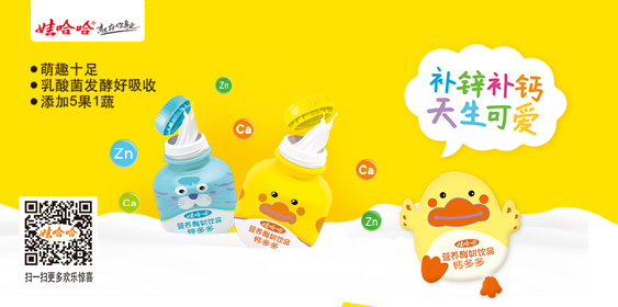 一款具备“萌”属性的健康酸奶,乳酸菌发酵,牛奶蛋白更好吸收;富含牛磺酸、维生素B3营养素,营养均衡发展;添加果蔬汁,酸酸甜甜更好喝。补锌补钙天生可爱,儿童人群和年轻消费群体都喜欢。