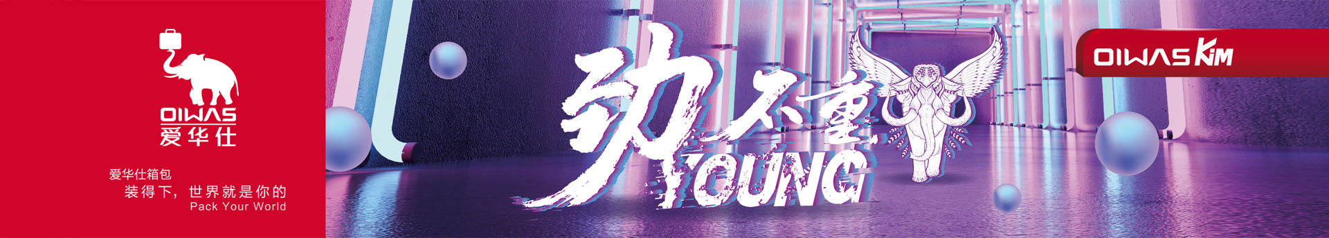 2019年,爱华仕发力潮牌市场,面向年轻学生群体推出OIWAS KiM年轻潮牌,主张通过奇幻的产品设计理念和独有的猛犸大象图腾赋予潮牌更具年轻潮流的个性,彰显青春不重young的价值主张,致力于和年轻无畏的潮青年一起打造奇幻、劲潮的学院派箱包。 |