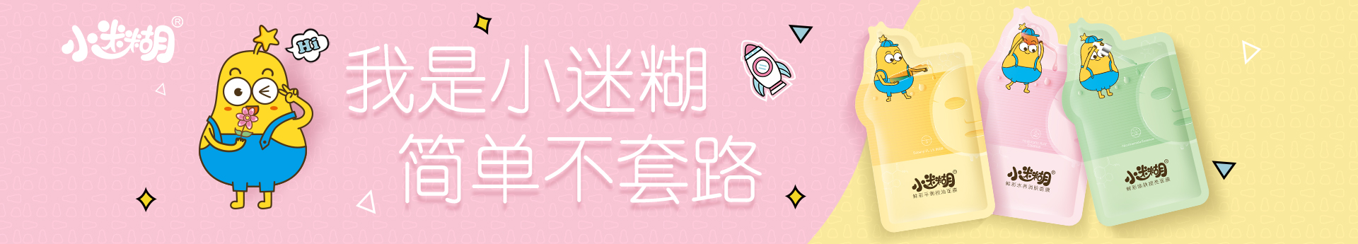 小迷糊现主应用在以面膜为主的护肤品中。它相信天然的力量——汲取大自然的植物能量,为肌肤细胞充沛补水;给肌肤做减法,还原本真。